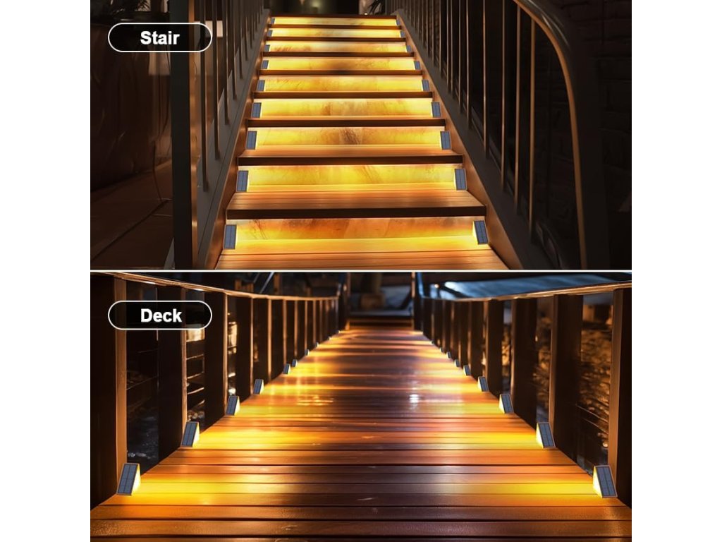 Solární lampy na schody jsou ideální doplněk pro chodníky, terasy, schodiště do zahrady i kolem garáže. Poskytují příjemné teplé světlo, které zvyšuje bezpečí pohybu venku a zároveň nenásilně doplňuje styl exteriéru. Při prvním použití stačí nechat lampu na přímém slunci, aby se baterie dobila a automatický světelný senzor mohl fungovat podle očekávání. Ať už hledáte praktické osvětlení nebo chcete jen dodat venkovnímu prostoru krásný světelný efekt – tento set je chytrým, úsporným a ekologickým řešením.