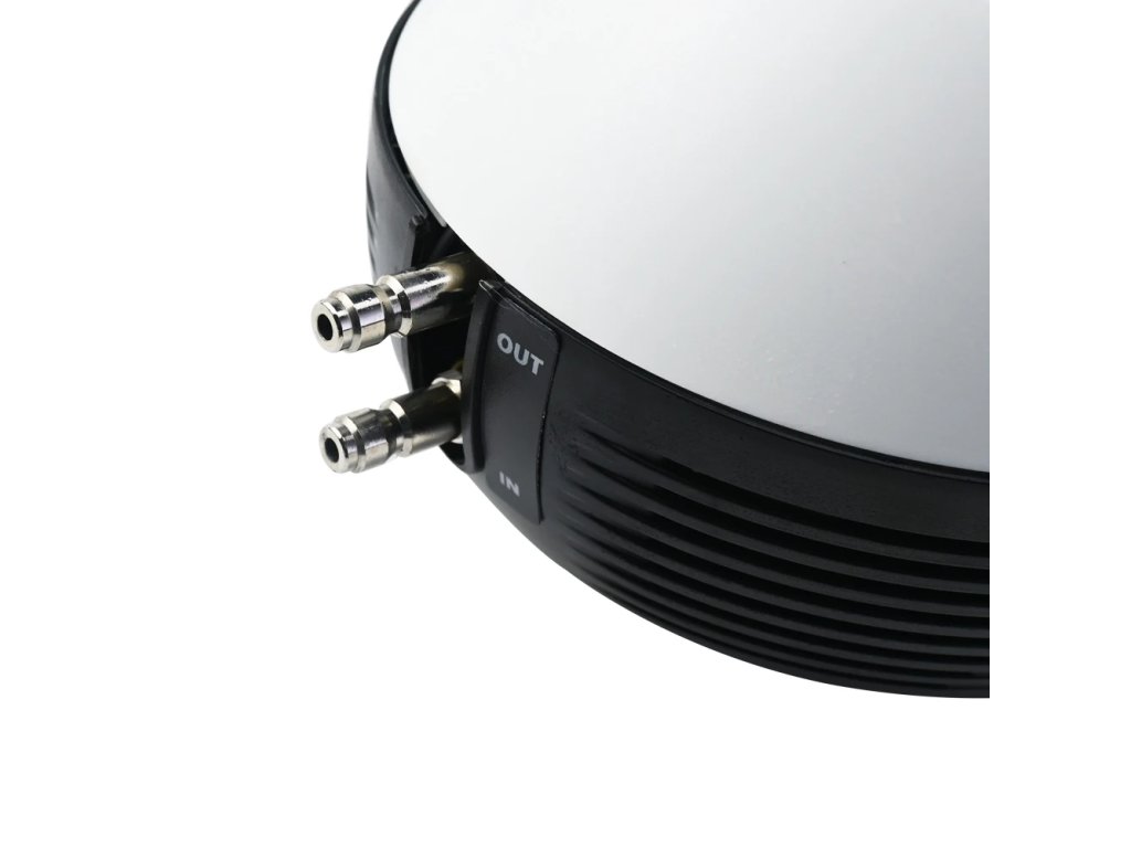 Srdcem celého systému je výkonné mosazné čerpadlo s keramickými písty, které pracuje s tlakem 50 bar (720 PSI) a zvládne vodní průtok 0,5 litru za minutu (30 l/h). Napájení zajišťuje bezpečný transformátor s napětím 24 V, který je součástí balení a umožňuje připojení do běžné sítě 110–240 V. Díky příkonu pouhých 120 W je provoz energeticky nenáročný, přesto systém zvládne běžet až 12 hodin denně bez přehřívání.
