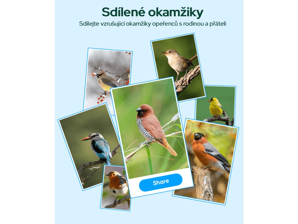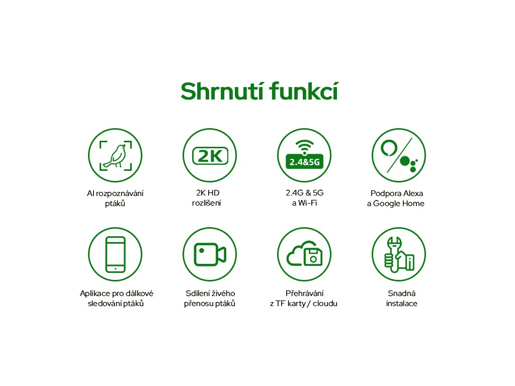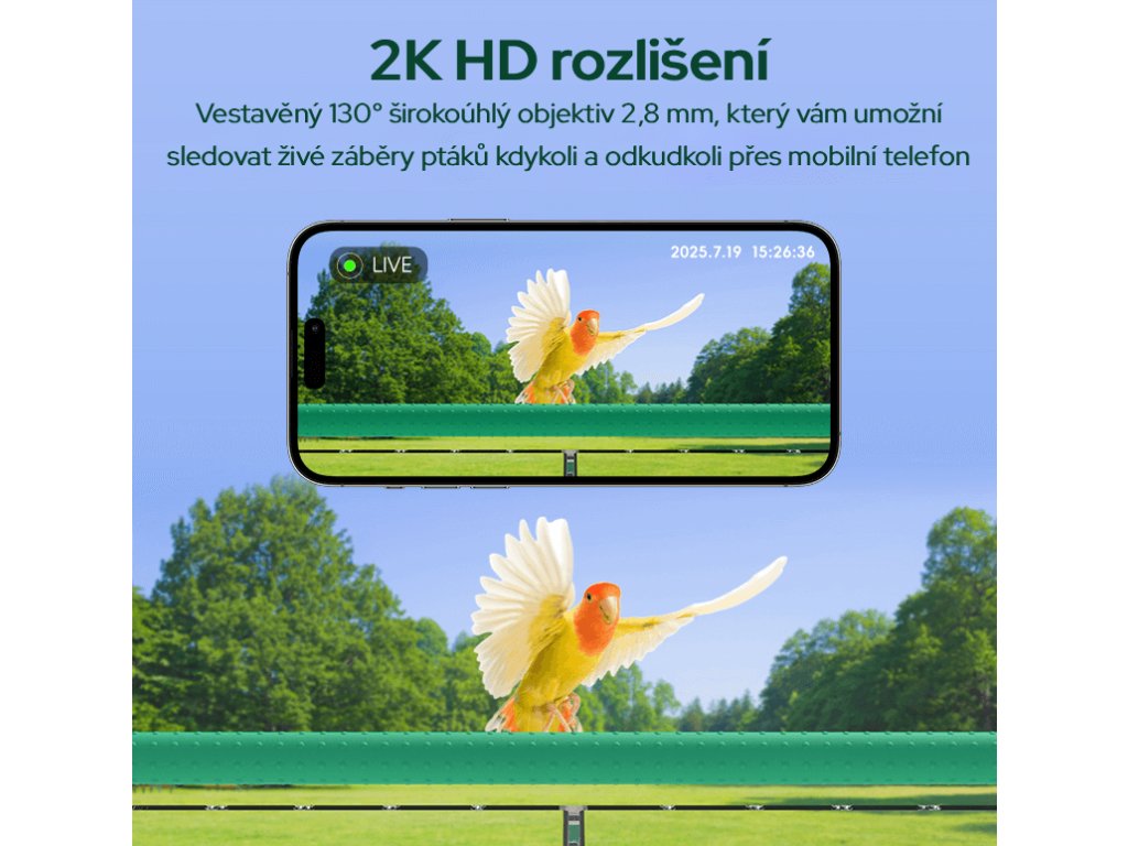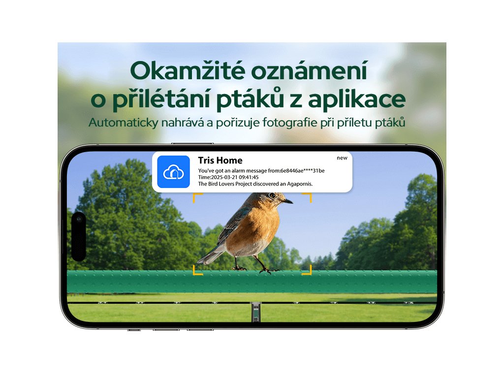 | Funkce: | AI rozpoznávání ptáků, Archiv záznamů, Detekce pohybu, Noční režim, Notifikace v reálném čase, WiFi, Živý přenos |