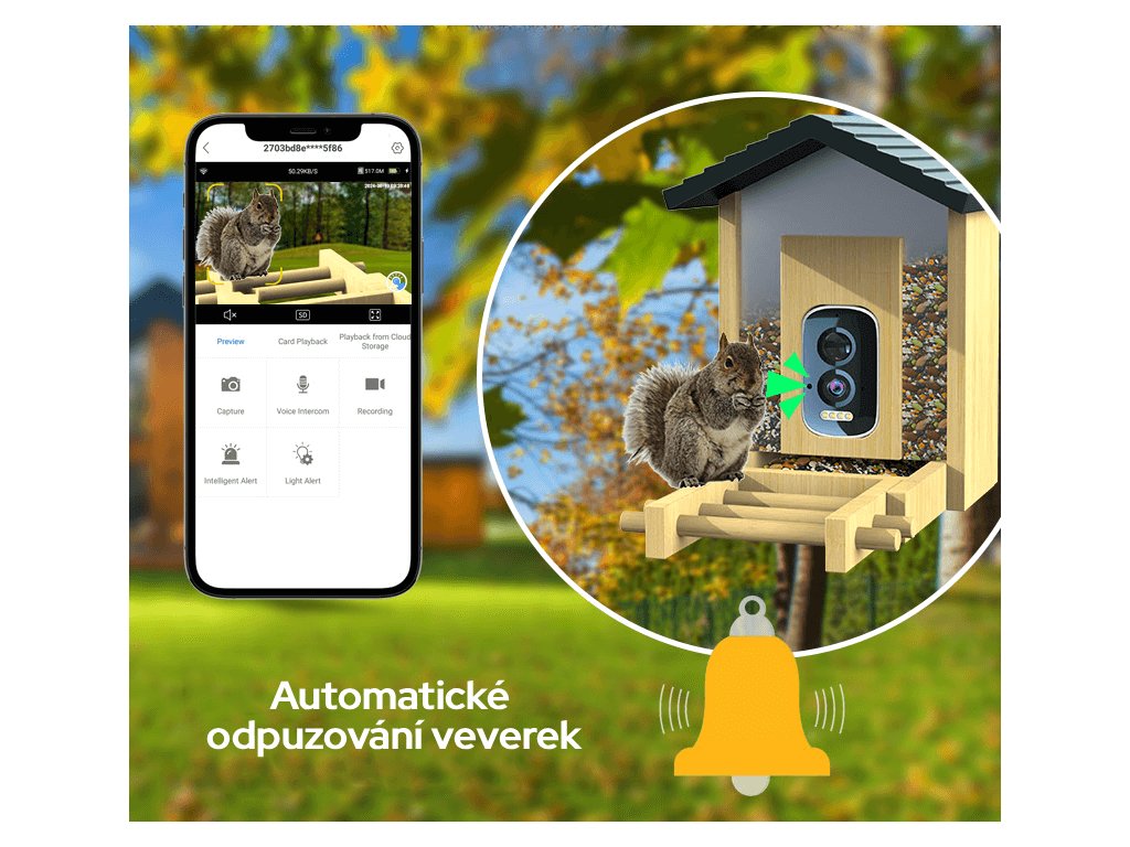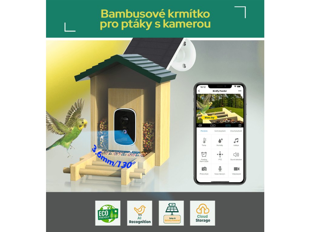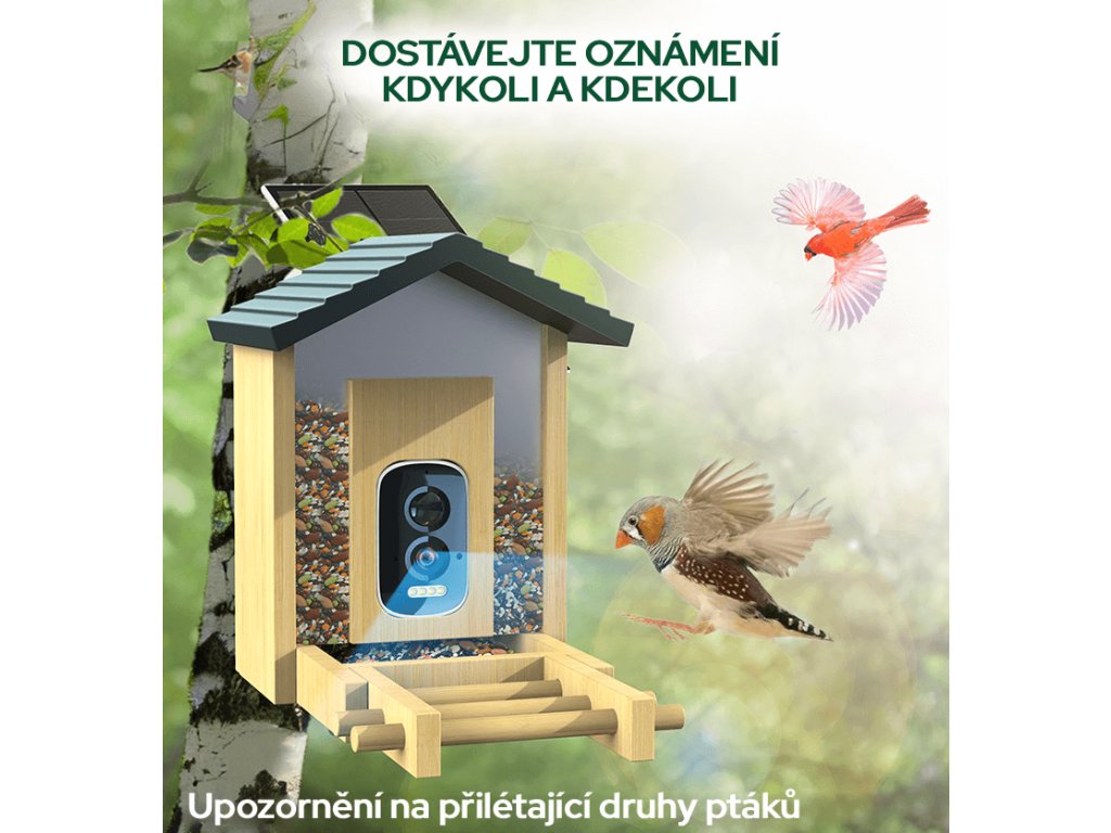 | Funkce: | AI rozpoznávání ptáků, Archiv záznamů, Detekce pohybu, Noční režim, Notifikace v reálném čase, WiFi, Živý přenos |