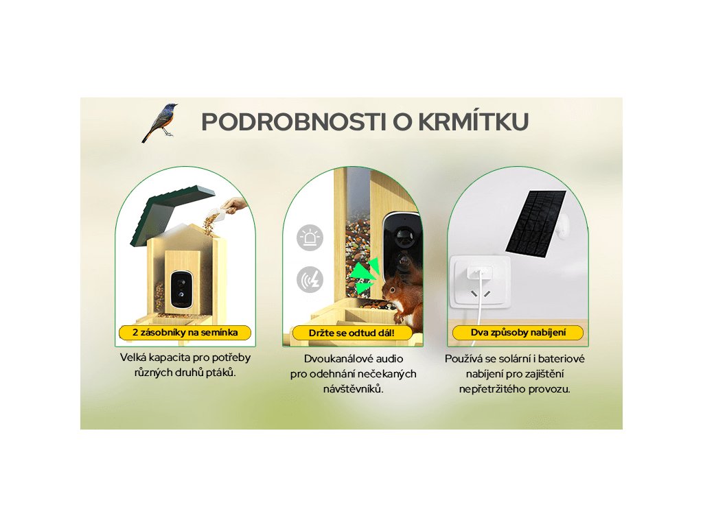 Ptačí oko – Sojka bonzačka je ideální volba pro milovníky ptactva, rodiny s dětmi i všechny, kdo chtějí mít divokou přírodu na displeji telefonu a zároveň ptákům nabídnout bezpečné, stylové a chytré místo k odpočinku a krmení.