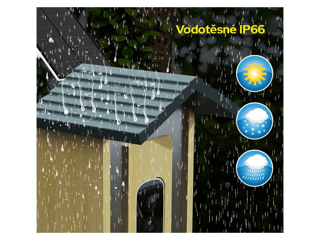 Kvalitní konstrukce a vodotěsné provedení (stupeň krytí až IP65/IP66) zajišťují odolnost vůči dešti, sněhu i teplotním výkyvům. Krmítko je navržené pro celoroční venkovní použití a zvládne i mrazivé zimy a horká léta, takže může zůstat venku po celý rok.