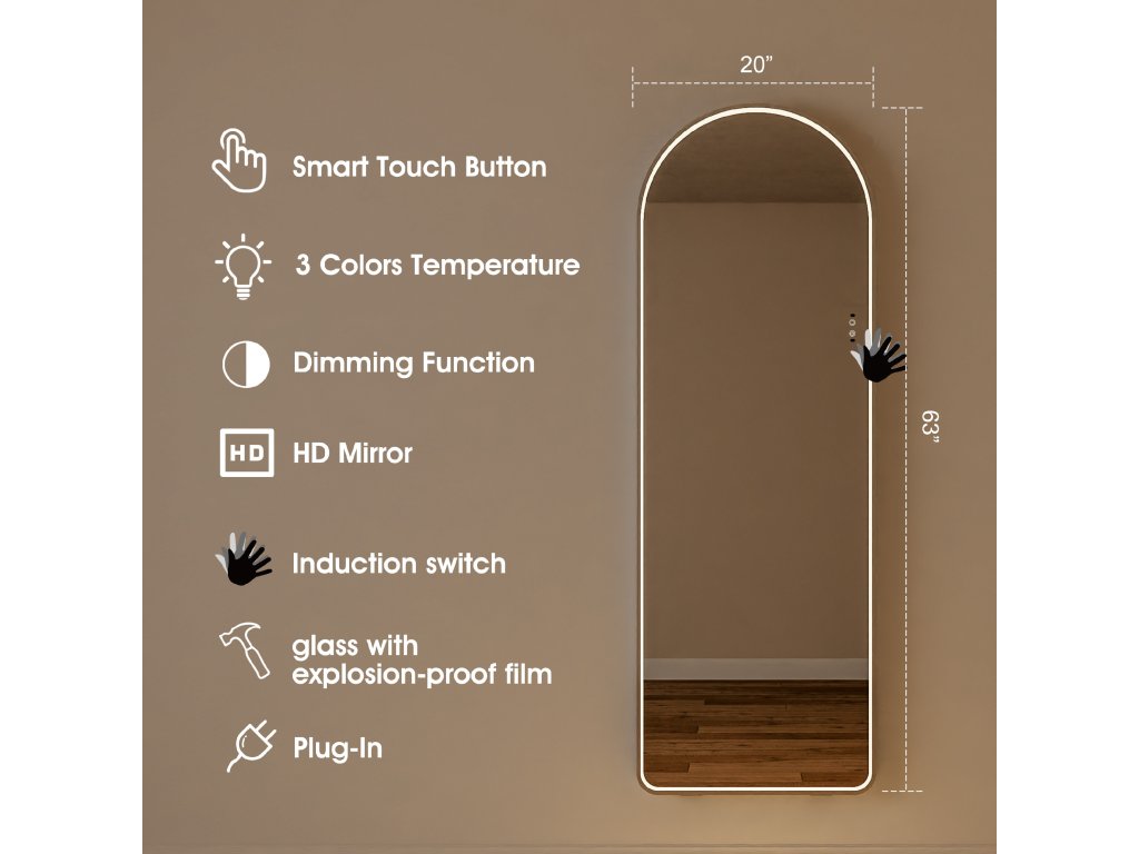 Zrcadlo je vyrobeno z odolného skla a osazeno do subtilního hliníkového rámu, který působí lehce a elegantně. Díky nástěnnému provedení jej snadno umístíte do ložnice, šatny, chodby či předsíně. Integrovaný napájecí kabel zajistí spolehlivý provoz, úsporné LED diody zase dlouhou životnost a minimální spotřebu. Zrcadlo je tak nejen praktickým pomocníkem, ale také stylovým doplňkem, který okamžitě pozvedne atmosféru vašeho interiéru.